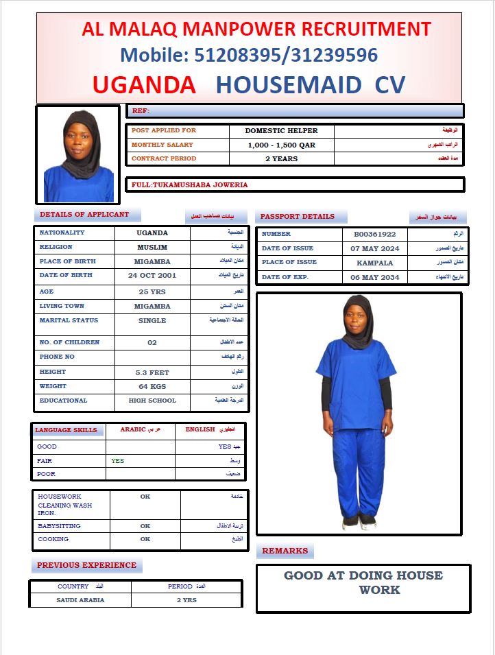 Maid TUKAMUSHABA JOWERIA