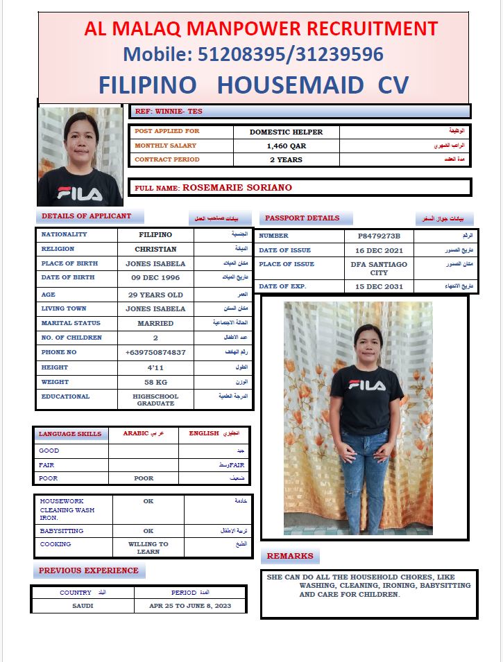 Maid ROSE MARIE SORIANO