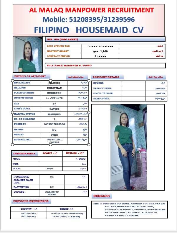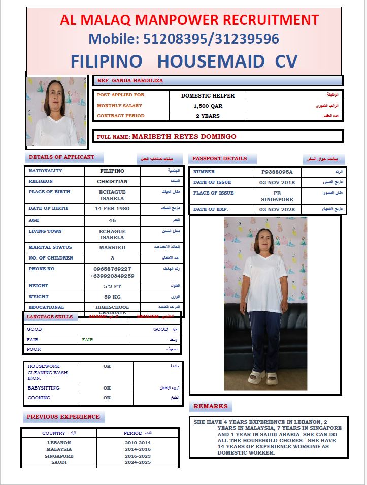 Maid MARIBETH DOMINGO