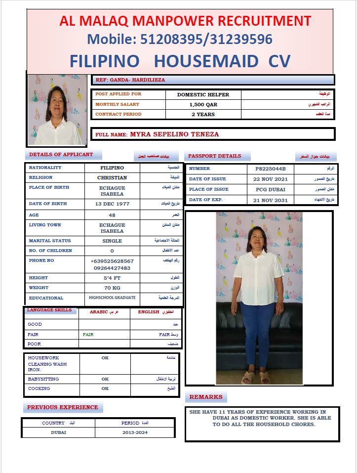 Maid MYRA TENEZA