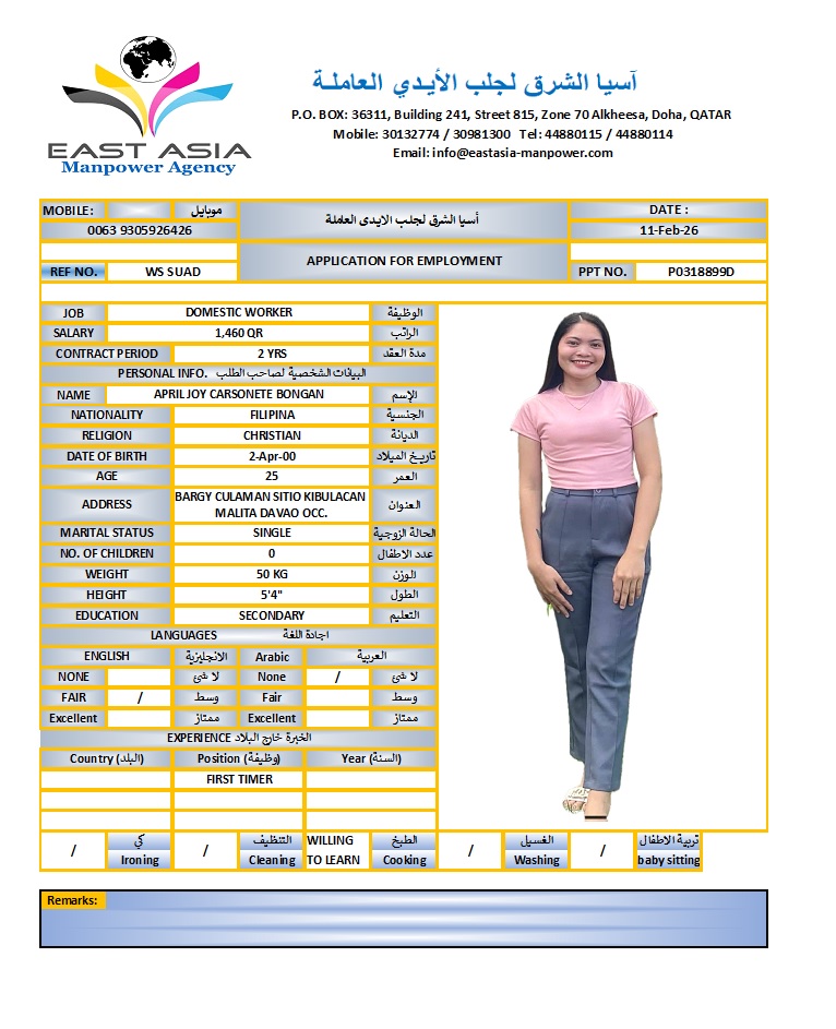 Maid APRIL JOY BONGAN
