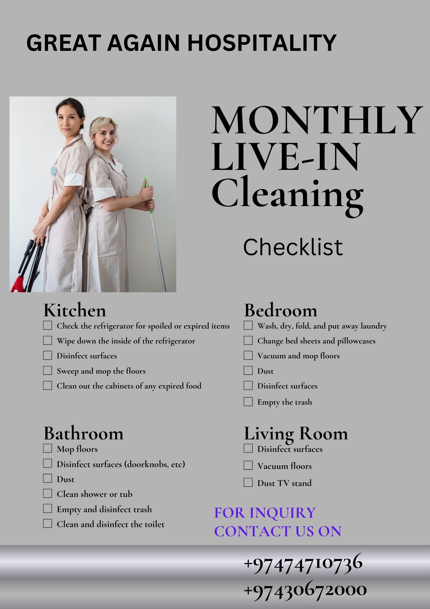 Maid MONTLY CLEANERS LIVE IN