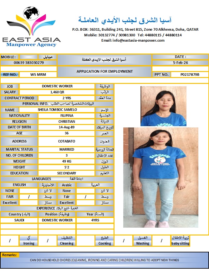 Maid SHEILA SAMELO